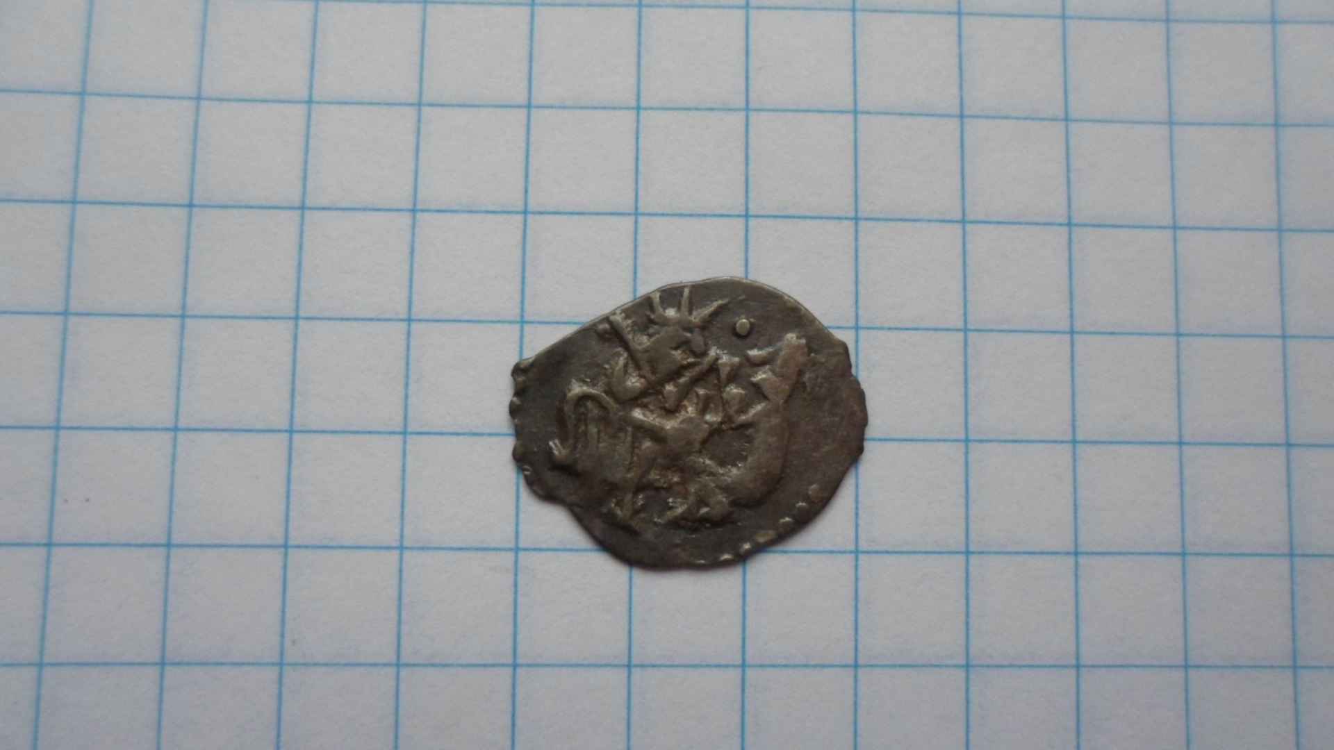 Тут попалась странная монета, на татарку не похожа, вес 0,95 Может можно определить? Василий I коломенской чеканки. Хотелось уточнить, Коломенская какая? |