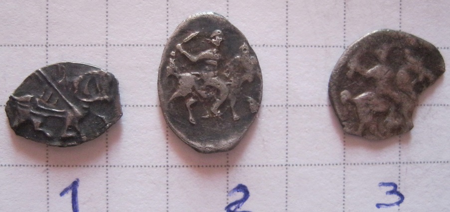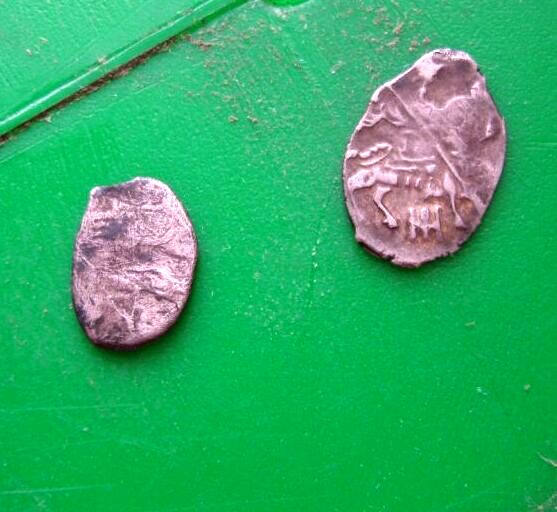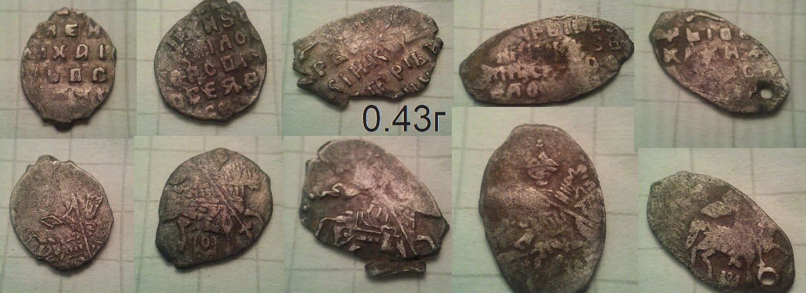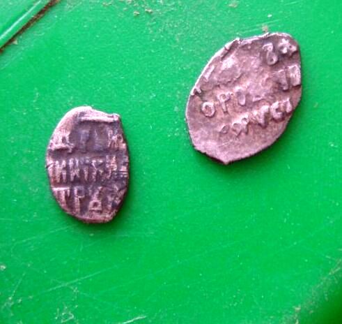 QUOTE(peps(Паха) @ Jun 18 2015, 23:49) Приветствую!!! Копали распашку чешуи Ивана Грозного... Среди прочих монет попались необычные(для меня).Вес круглой-0.66г,вес с "китайскими"буквами-0.65г. Прошу подсказать по ним.Кто? Что? И по цене... Если не сложно... Заранее спасибо!! С ув Паха. Эти тоже Грозный, простейшие. 40 р., 30 р. "Китайскими" буквы получились из-за двойного удара - очень распространенное явление в чешуе. -------------------- новый каталог по царской чешуе