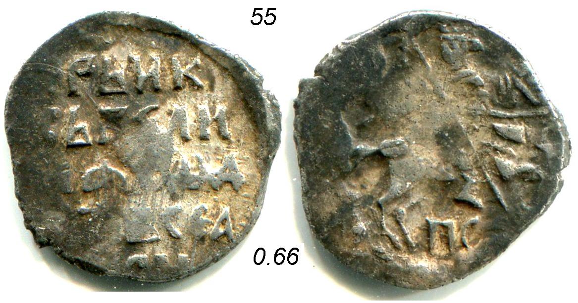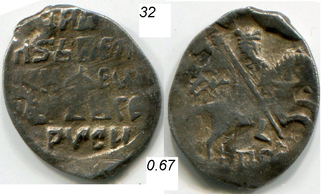 QUOTE(alcatel @ Jun 22 2015, 23:37) Добрый вечер! Вот такая чешуйка на определение и оценку. Заранее спасибо всем ответившим. Иван IV, денга тверская (частая) |