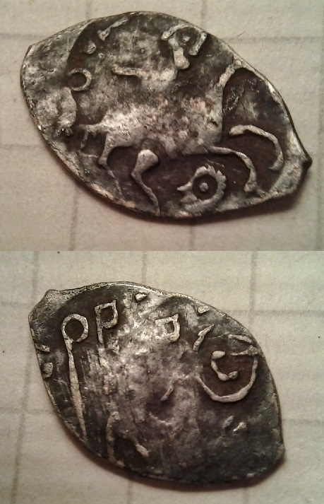 Она отчеканена в удельный период, но сама монета к уделам не относится, так как является великокняжеской чеканкой