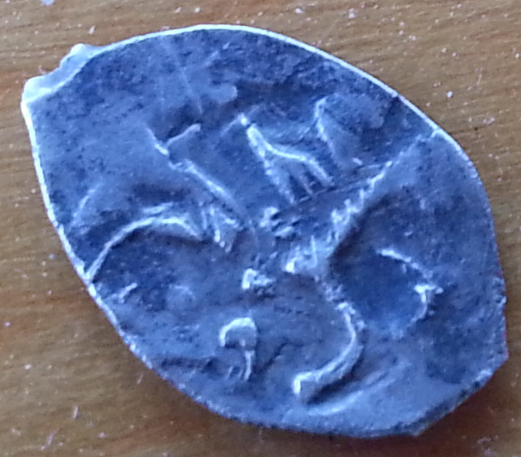 QUOTE(Дербник @ Jul 5 2015, 21:44) Прошу определить и оценить, вес 0,86 грамма, юго-восток МО. Василий I, коломенский надчекан, 3000 - 4000 р. -------------------- новый каталог по царской чешуе