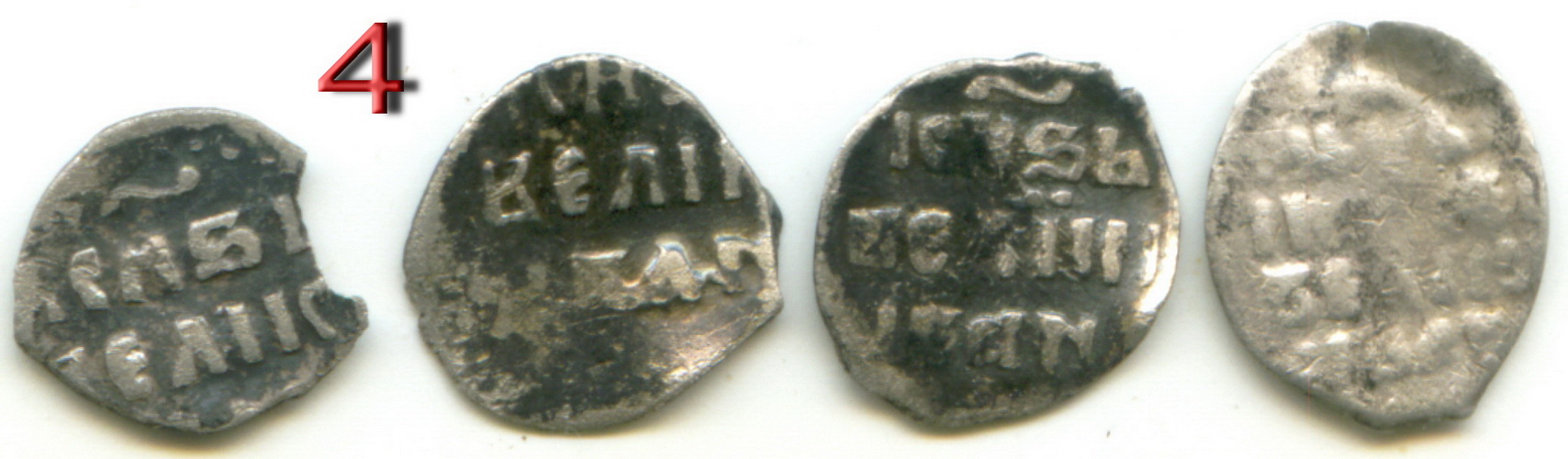 QUOTE(Кроткоп @ Jul 7 2015, 20:36) Подскажите, если кто-то смог прочесть: ![]() ![]() Вроде МихФед и Грозный? И вот эти, совсем никакущие. Тут я совсем не смог. Хыть бы царя.. ![]() ![]() Все 4 Михаил Фёдорович. № 2 - денга, не самая частая, но в плохом состоянии. -------------------- новый каталог по царской чешуе