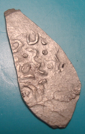 QUOTE(unterofizer @ Jul 14 2015, 15:46) Добрый день. Атрибутируйте и оцените пожалуйста монету. Вес - 0,75 гр. Найдена в Нижегородской области. Двустороннее подражание. -------------------- новый каталог по царской чешуе