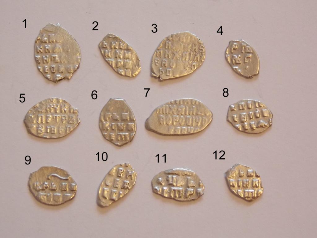 Помогите в расшифровке(первый опыт)! Я некоторые определил(если вдруг не так, поправьте), а некоторые совсем никак! И в оценке помогите, если не затруднит! 1. Иван Алексеевич № 1540 2. Петр предположительно 1714 год сМД № 1764 3. Михаил Федорович № 497 4. ? 5. Петр и Иван предположительно № 1561 6. ? 7. Михаил Федорович № 492 или 494 или 508 8. ? 9. ? 10. ? 11. ? 12. ? Большое спасибо за помощь! Сообщение отредактировано Паня: Jul 21 2015, 15:11 Вложенные эскизы изображений |