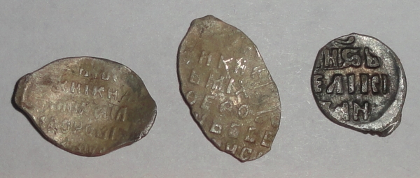 QUOTE(alshi @ Jul 21 2015, 20:24) Подскажите по монеткам. Последняя - деньга Ивана Грозного? Есть интересные или все рядовое? 1 МихФед, но не знаю какой номер по кг 2МихФед КГ621 - простая 3 Деньга Грозного - простая |