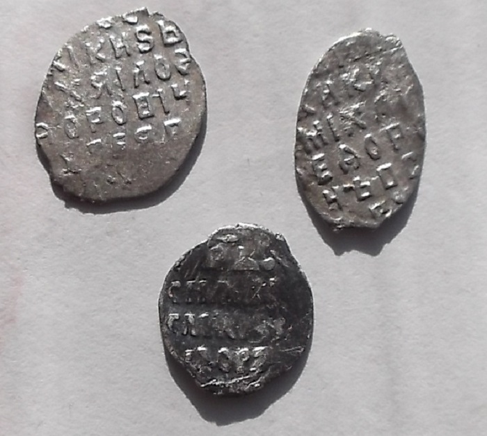 QUOTE(ВРК @ Aug 24 2015, 08:15) Приветствую!Подскажите по чешуйкам.(определение и оценка).С ув Дмитрий 1,2 - копейки Михаила 3 - деньга Федора Ивановича все простое , рублей 100 за все. (КГ 471,569,105) |
