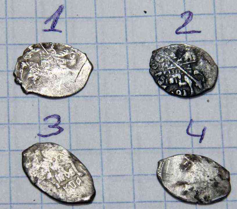 2 - его же деньга 3 - скорее всего копейка Алексея Михайловича 4 - медная псковская копейка его же , так называемый "медный бунт" -------------------- Человек, который много совершает, и ошибается во многом (Еврипид)