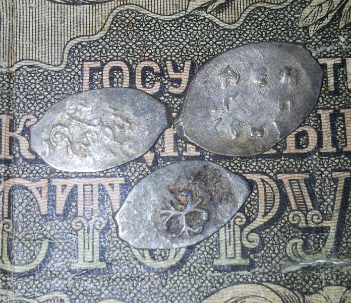 Доброго времени, Коллеги. Подскажите по монетке. Видится Петр Алексеевич, но вот легенда с двух сторон. Всадника нет. Вес 0,28 гр. (вроде бы обычный). Заранее благодарен.