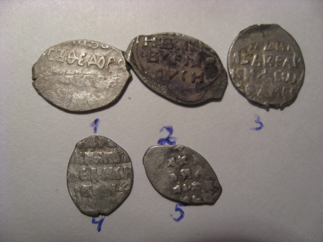 QUOTE(Sergey RZN @ Oct 9 2015, 22:40) Добрый вечер уважаемые форумчане,прошу оценить царские монеты в серебре.Заранее спасибо с ув.Сергей. 1)Копейка Ивана 4 Грозного(Псков)по КГ N74. ![]() ![]() 2)Копейка Ивана 4 Грозного(Новгород)по КГ N75. ![]() ![]() 3)Деньга Ивана 4 Грозного(Москва)по КГ N59,Степень редкости 5. ![]() ![]() 4)Деньга Ивана 3 знак В,дозор. ![]() ![]() 5)Василий 3. ![]() ![]() №3 это обычная КГ61 Грозный рублей по 20-30 Иван 3 и Василий 3 рублей по 300 |