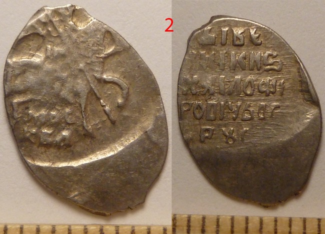 QUOTE(тюля @ Oct 22 2015, 19:31) Подскажите по чешуе , чья и сколько стоит . Заранее спасибо. Деньга Ивана 4, копейка Петра 1, полушка на грозненский период 50, 30, 150 |
