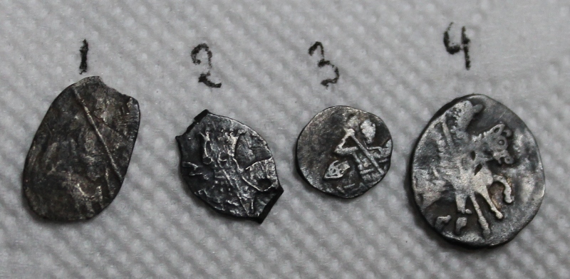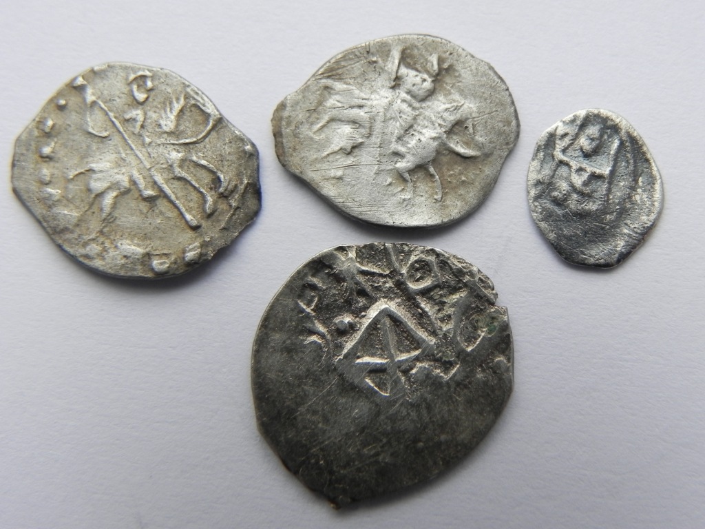 QUOTE(Bozon @ Oct 25 2015, 18:32) 2 и 3 - Петр (2 - ИМХО Старый двор 1696-1704, 3 - Кадашевский двор 1709-1717). 4 - Иван Грозный (Псков?, КГ № 79, простая, 1547-1584). Все простые московские копейки. 1 - ИМХО Михаил Фёдорович (1613-1645). Цена невелика. Рублей по 15...20 за штуку, Грозный - около 30+. Благодарю. |