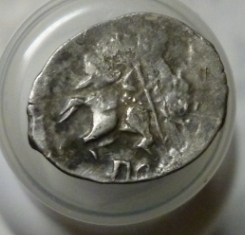 QUOTE(katakombnik @ Nov 4 2015, 23:58) Вторая сторона! Практически угадал (ибо плащ распущен на клочки)...Ушатанная псковская копейка Бориса Годунова 1599 г. КГ 193. Без степени редкости. Рублей 30..40. |