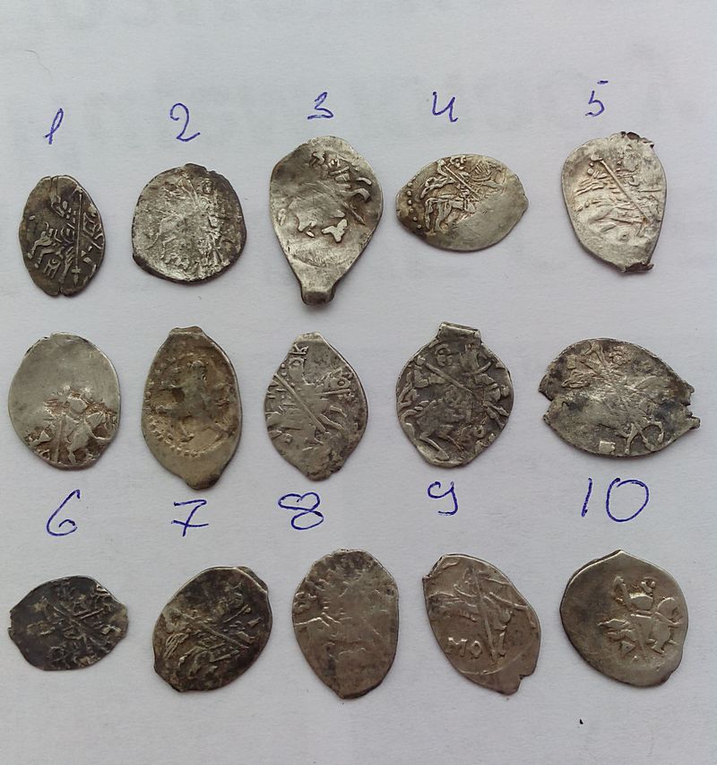 Это монетка Василия Васильевича II Темного? Просто на одной стороне монеты виден Самсон разрывающий пасть льву, а с другой стороны всадник на коне, но рука у него занесена над головой вроде бы, а не сокол в руке, и ноги у коня за круговой ободок заходят на круговую надпись.Не могу поэтому точно определиться с монеткой чтобы выставить на аукцион и не ошибиться в описании. Вес монеты- 0.67 грамма. Заранее благодарен за помощь. Вложенные эскизы изображений |