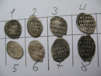 QUOTE(ctrannyinik @ Nov 27 2015, 14:21) Приветствую! Московские копейки Михаила Фёдоровича. 1613-1645. Примерно 40...60 р. за штуку.Помогите пожалуйста определить и оценить чешуйки Хотя правая нижняя может уйти и в разы выше - из-за хорошего прочекана и большой площади текста. Первая и вторая в верхнем ряду слева - тоже немного выше стандарта. Две штуки - Новгород (нижний ряд, 4 и 5 слева) - от 100 р.+ Сообщение отредактировано Bozon: Nov 27 2015, 15:36 |