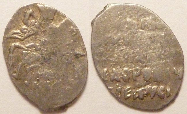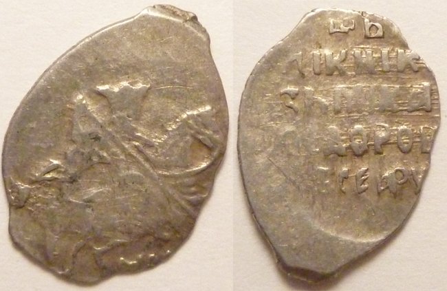 QUOTE(лесом-рекою @ Jan 7 2016, 16:50) Вот с этой чешуйкой разобраться сегодня никак не могу по принадлежности. По строчкам подходят имена или [Васи]леio[анович] или [A]лек[cei]. Но буквы М под конем у Шуйского же не бывает, а у Алексей Михайловича по тексту ни с одной не совпадает монеткой из каталога. Помогите, пожалуйста ![]() Алексей, ГКХ 871(IX). -------------------- новый каталог по царской чешуе