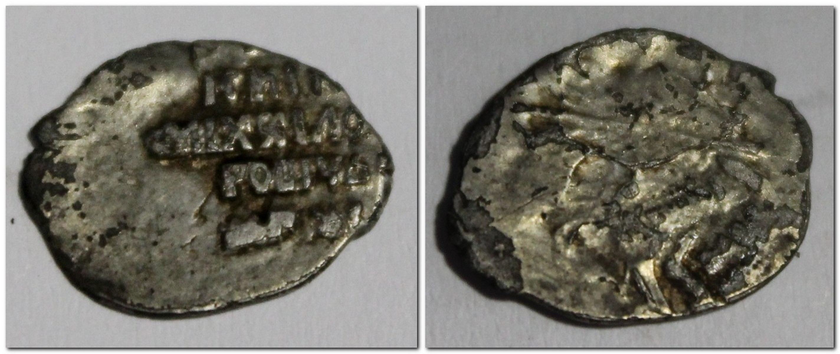 Вес 0,64-0.65 г. Судя по короне и скорее всего бороде, чекан после 1560 г. Но по КиГ не нахожу такого соотношения ЛС и ОС. Премного благодарен. -------------------- «Какое большое поле... по нему можно целый день проходить и ничего не найти...» (с) камрад