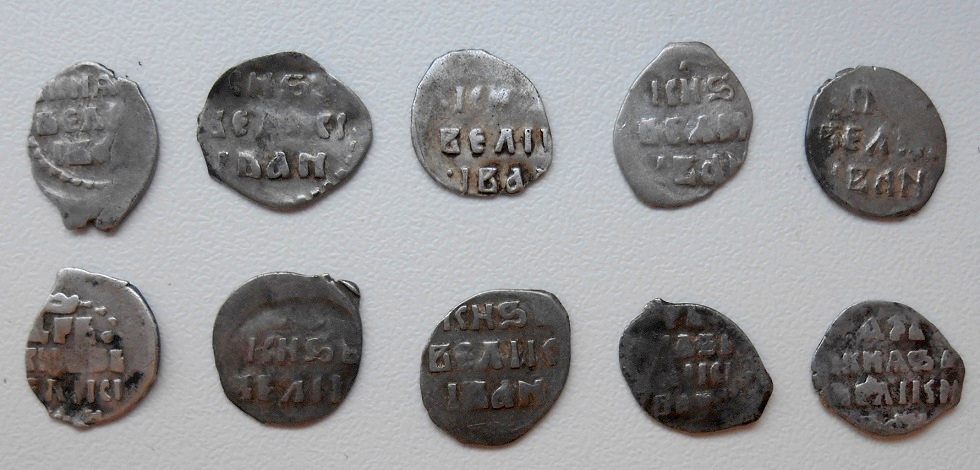 QUOTE(Ageron @ Feb 19 2016, 18:46) Добрый вечер. Помогите, пожалуйста, определить по КГ следующие монеты Ивана Грозного. 77 43 67 |