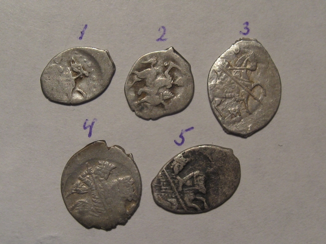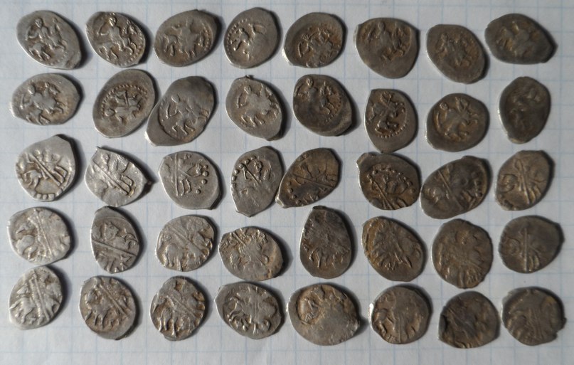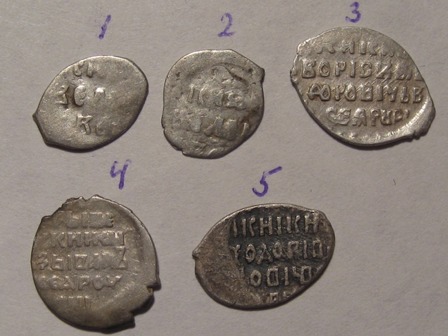 QUOTE(KORAL @ Feb 24 2016, 12:46) Здравствуйте! Подскажите по КГ и стоимости. монетки все простые 1,2.денги Ивана Грозного, если не ошибаюсь, то КГ26 и КГ43, 30-50руб. за 1 шт. 3. копейка Бориса Годунова, КГ 173 , 50-100руб 4. копейка Ивана Грозного, КГ93 , 50-100руб 5. копейка Фёдора Ивановича, КГ 114, 50руб -------------------- куплю "чешую" кучками