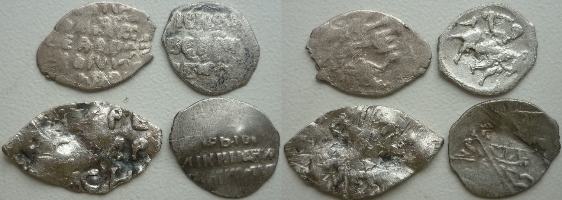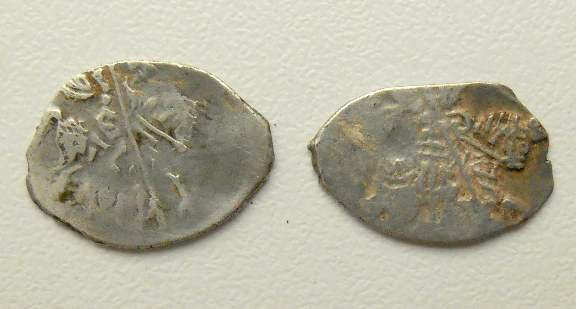 Петровские копейка 1715г. и полушка 1722г. цена, я думаю, не большая учитывая состояние, по чешуйкам сам не понимаю. Спецы посмотрят, подскажут.