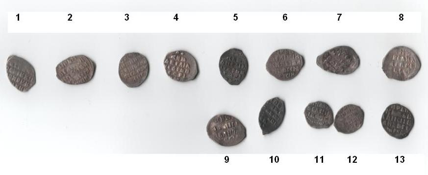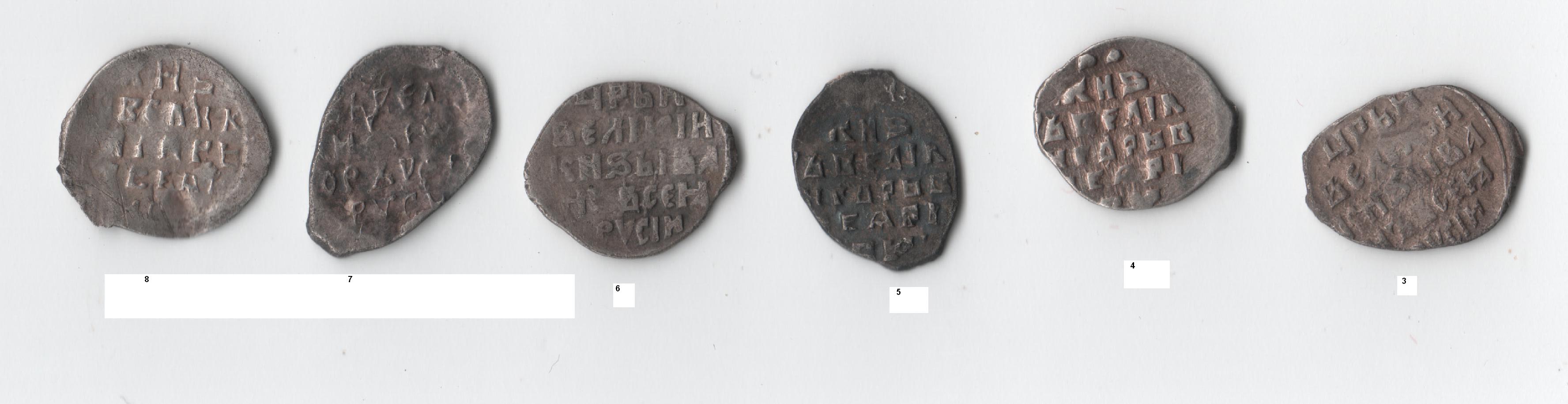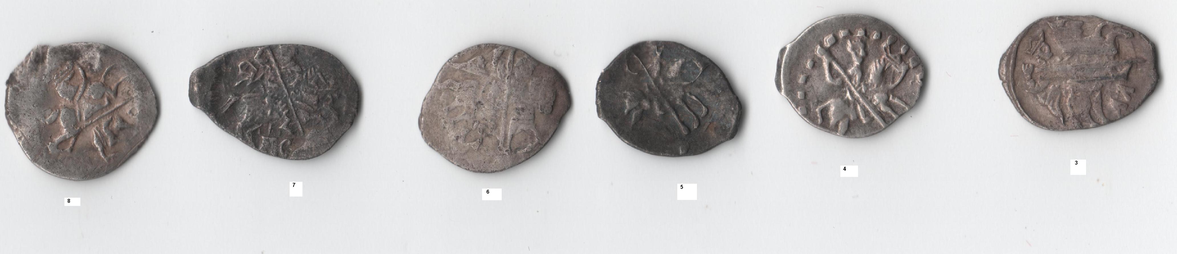 QUOTE(лугинки @ Mar 6 2016, 12:14) Помогите пожалуйста определить и оценить данные находки Вес: 3 -0,67 4-0,66 5-0,64 6-0,62 7-0,64 8-0,62 7 - псковская копейка Федора Ивановича остальные копейки Грозного -------------------- Человек, который много совершает, и ошибается во многом (Еврипид)