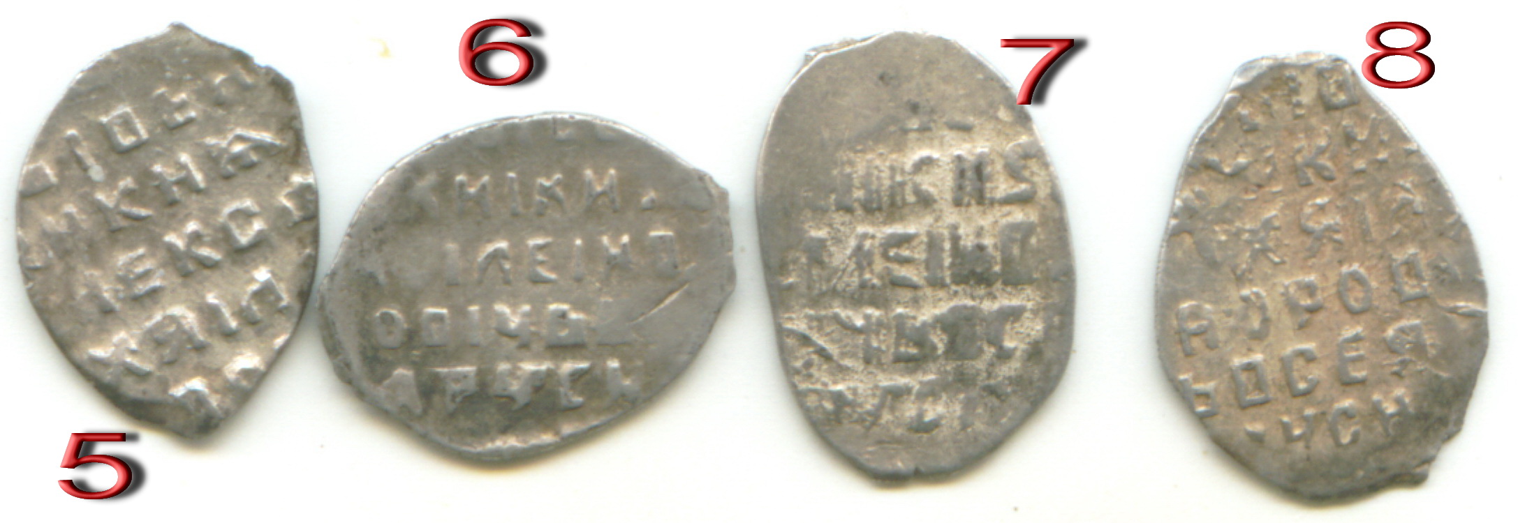 QUOTE(roykin @ Mar 27 2016, 18:42) 1. Шуйский, КГ249 2.Грозный, КГ75 3. Шуйский, КГ265 4. Грозный, КГ86 5.Грозный, КГ87 6.Грозный,КГ87 7.Михаил Фёдорович, КГ546 8.Иван Грозный, КГ48 9. Фёдор Иванович, КГ140 10. Грозный, КГ 98 9,10. полушки лучше отдельно, остальное можно кучкой -------------------- куплю "чешую" кучками