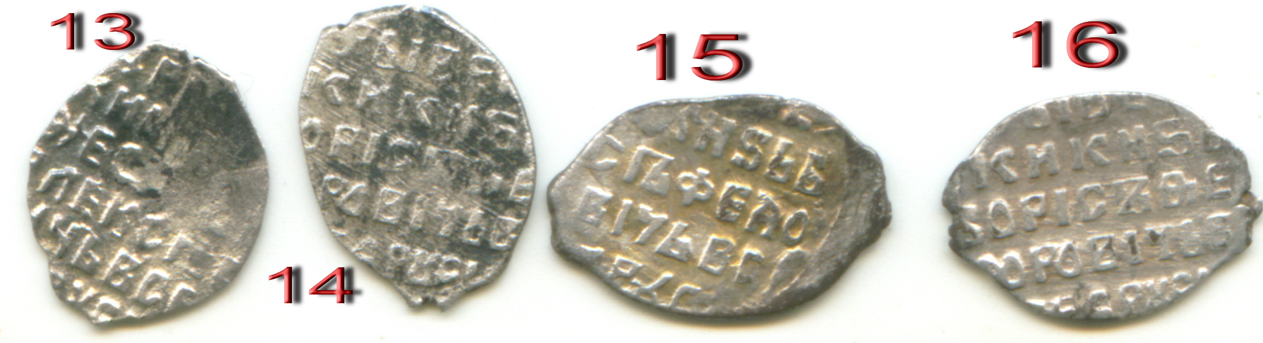 QUOTE(poiskcoins @ Mar 28 2016, 11:54) 1.Грозный, КГ73, 30руб 2.Михаил Фёдорович, КГ415, двойной удар, без оценки, 3. Борис Фёдорович. КГ173, 30руб 4. Михаил Фёдорович, КГ520, 50-70руб 5. Михаил Фёдорович, КГ660(V), ГКХ698(VI) от 500руб. 6.Шведы в Новгороде, КГ327, 50-80руб 7. Алексей Михайлович, КГ1017, от 150 руб 8.Грозный, КГ77, 30руб Цены,конечно, примерные. -------------------- куплю "чешую" кучками