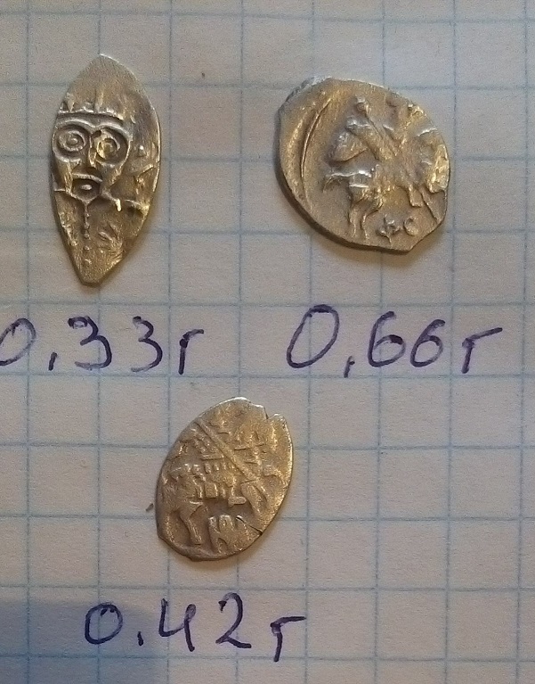 QUOTE(мурмудон @ Apr 6 2016, 16:47) подскажие по чешуе и оценка если можно Обрезанный псковский довмонт, копейка Грозного и копейка Михаила Федоровича -------------------- Человек, который много совершает, и ошибается во многом (Еврипид)