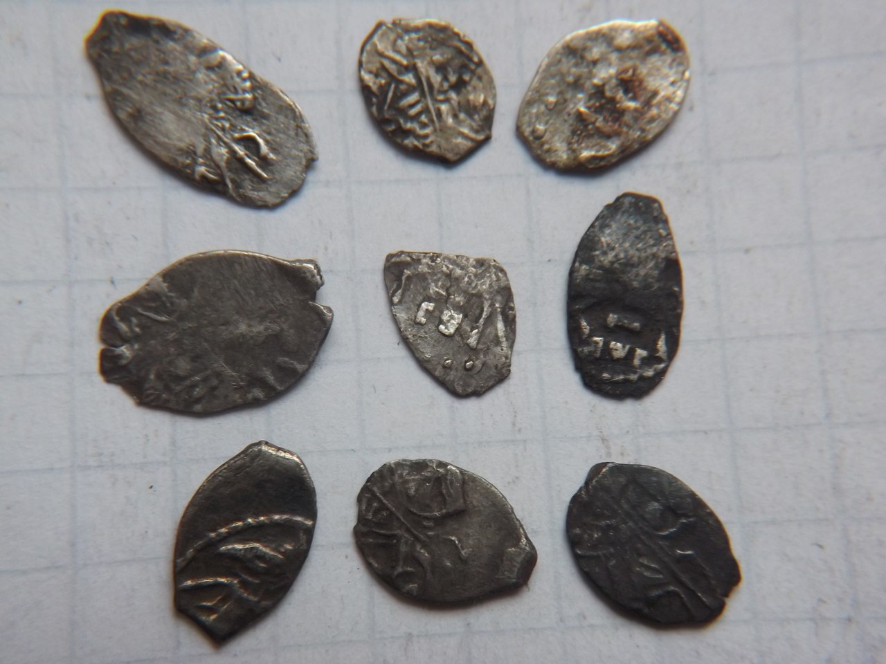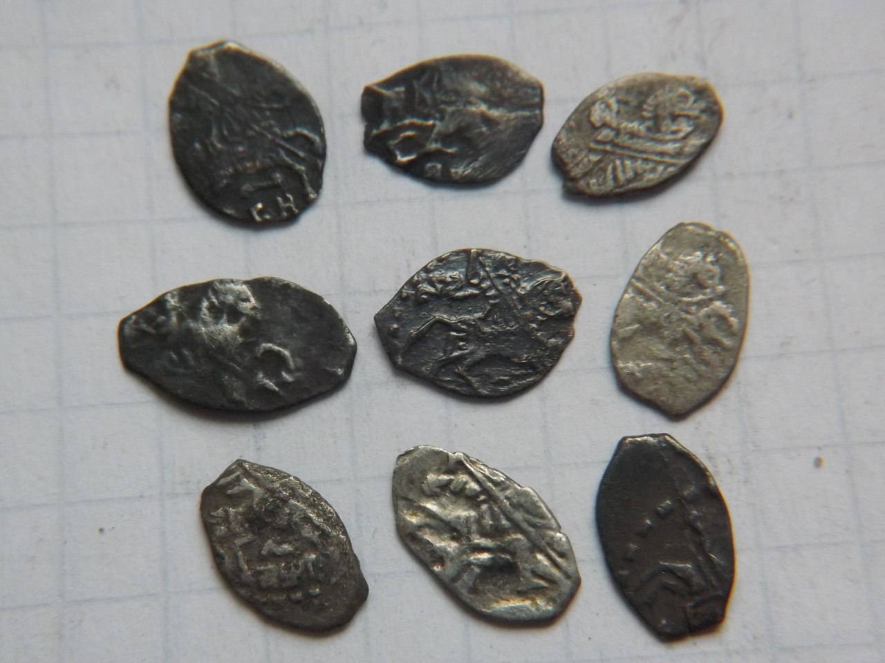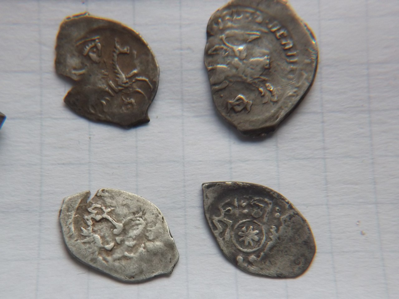 QUOTE(ишим @ Apr 7 2016, 13:09) и вот эти 4. ... первая весит 0.79. 2-0.80. 3-0.79. 4- 0.36 1,2,3 денги новгородские, в хор.нормативном весе. 1 рубеж правления Иван-Василий III, 2,3 Иван III 3 денг тверская, Василий III (тоже в пределах 250р.+) |
