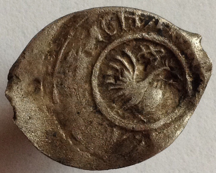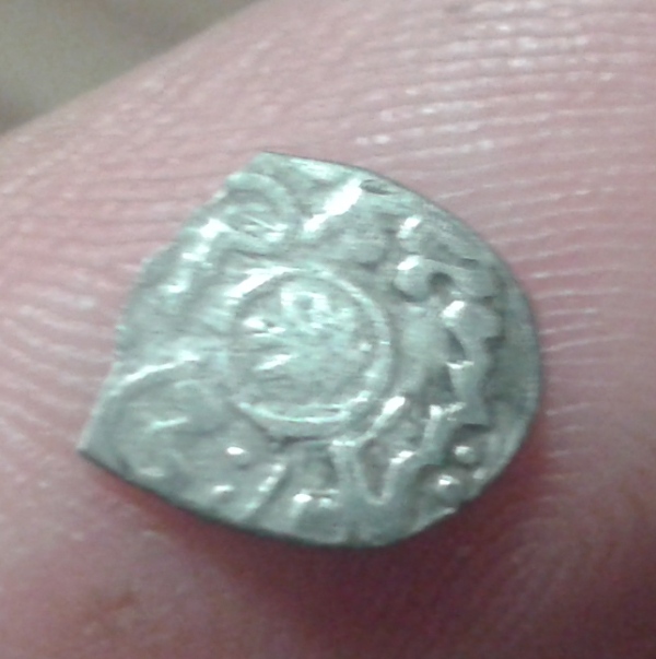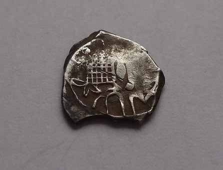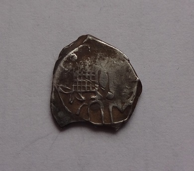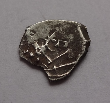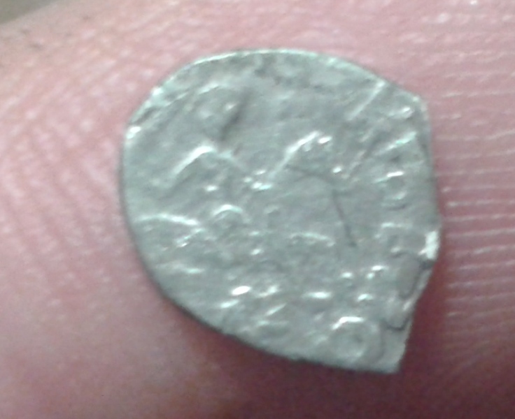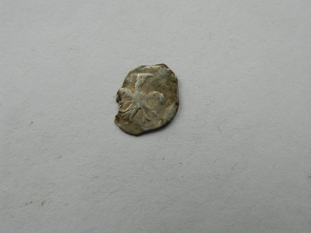 Уважаемые спрошу ещё раз.Данной монеты нету в ГП.Пару лет назад у меня была такая монета в лучшем качестве,фото прилагаю.Тогда тоже никто вразумительного по ней сказать не смог.Может за пару лет что изменилось?Монеты одноштемпельные.Со слов одного человека читается вроде как ДМИ.Монеты хоть и найдены с разницей в пару лет,но расстояние между ними всего 7 км.Это в границахсовременного Александровского района,на тот момент княжество Переславское.Хотелось бы услышать мнение специалистов.