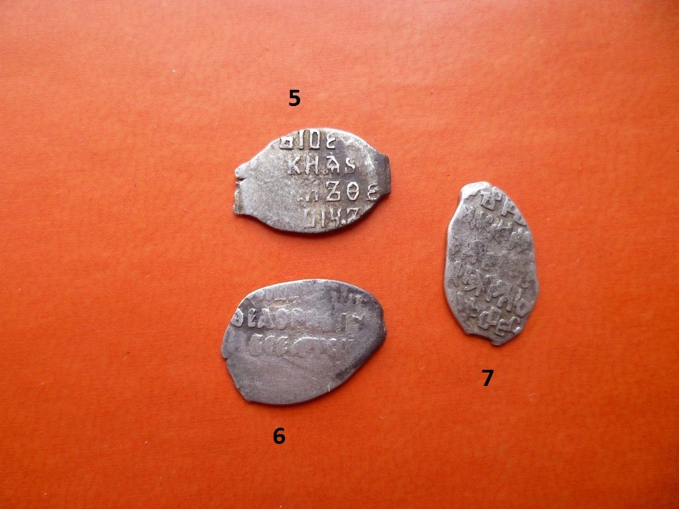 QUOTE(Velimir @ Apr 27 2016, 08:49) Здравствуйте. Помогите определить чешую и сколько именно эти чешуйки могут стоить. 1,4 - Борис, Новгород 2 - Федор Иоаннович, Москва 3 - он же, Новгород с учетом состояния (которое не ахти) - рублей по 50 за штуку |