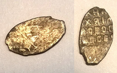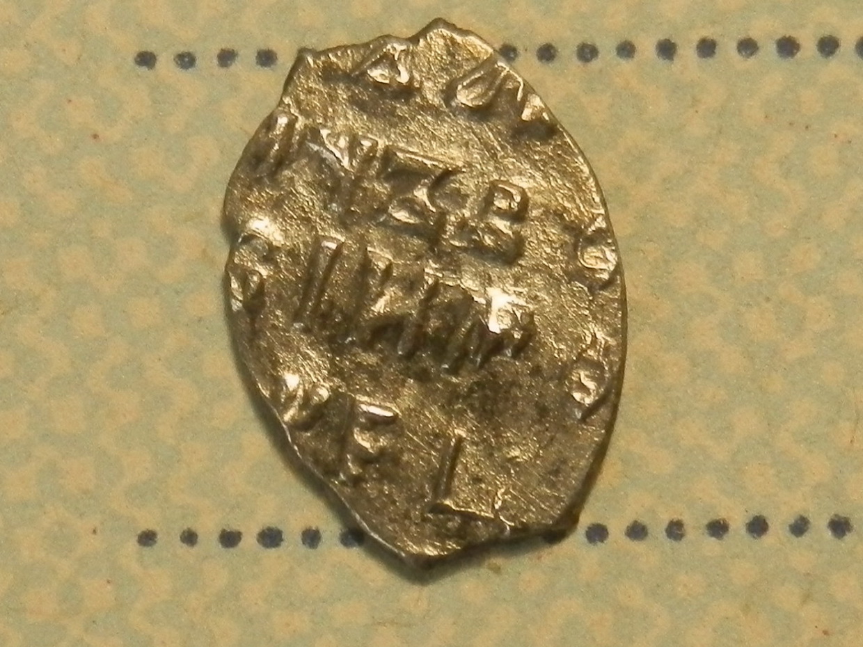 QUOTE(Тангенс @ May 5 2016, 14:44) Здравствуйте! Прошу подсказать по этой чешуйке. Красивая, но мне не понятна. Новгородская деньга Ивана 3, с резным штемпелем -------------------- Если я выиграл Ваш лот, сообщите пожалуйста в личку! Спасибо!