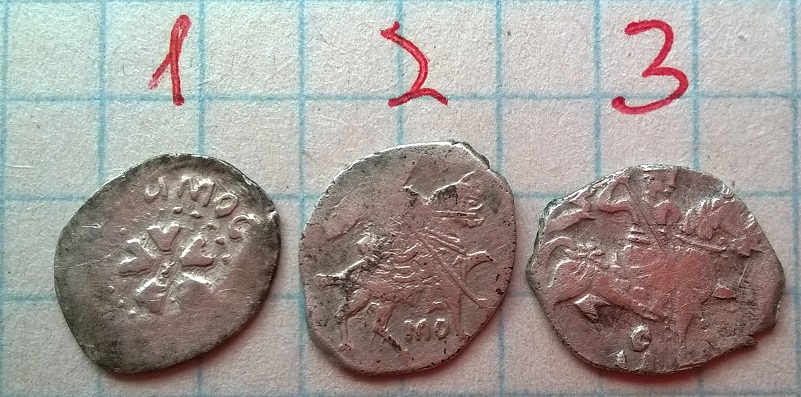 QUOTE(раз-два @ May 5 2016, 18:18) Добрый день.Уважаемые спецы подскажите по чешуе.Вес 1-0.33 2-0.48 3-0.64 Заранее спасибо. 1 - московская денежка Темного 2 - московская копейка Михаила Федоровича 3 - московская копейка Федора Ивановича -------------------- Человек, который много совершает, и ошибается во многом (Еврипид)