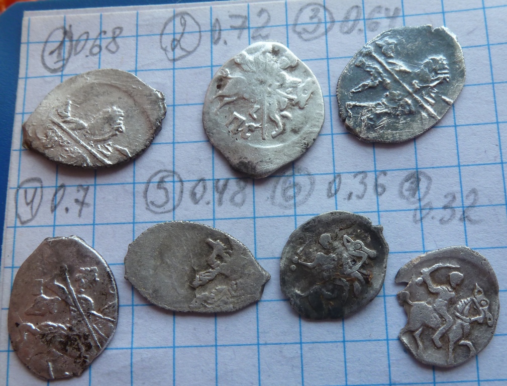 QUOTE(Copchick @ May 23 2016, 20:04) Господа! Прошу помощи в опознании, датировке и возможной стоимости чешуек. с ув. к Вам 1- найдена в Яр.обл.[/url] 2- найдена в Ряз.обл. 1. Анепиграфная денга СНВК нач 15 в по типу монет Бориса Константиновича; 2. убитая копейка Ивана Грозного -------------------- Куплю бронзовые замочки "лошадки" 14-15 вв. (половинки и целые) . Предложения в личку.