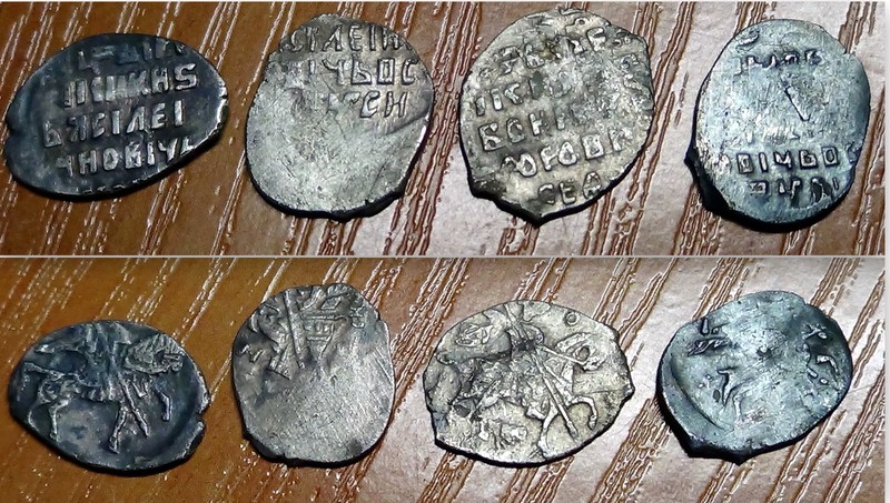 QUOTE(Честь имею @ May 28 2016, 18:58) Вечер добрый! Прошу атрибутировать и оценить чешуйки. Вес левой -0.5г, остальные - в районе 0.6г. Спасибо. Копейки: 1,2 - Шуйский, 3,4- Борис Федорович |