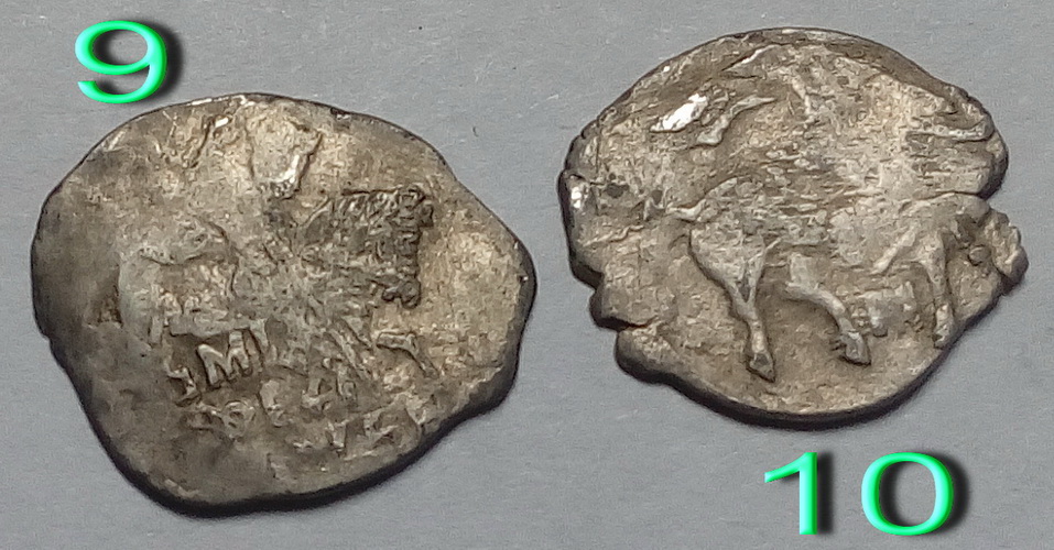 QUOTE(A.C.A. @ May 28 2016, 12:24) Еще немного: №3 - 0.08г, № 4 0.67г. 1. исходя из веса полушка Михаила Фёдоровича, КГ705 , на аукцион думается от 1000 руб. должна уйти и выше, насколько от покупателей зависит 2. полушка Грозного, КГ98, от 400руб. и немного выше 3. полушка, вероятно Михаила Фёдоровича, как предположение КГ701, без оценки 4. копейка Грозного, КГ73, 50руб. оценка, конечно, примерная. -------------------- куплю "чешую" кучками