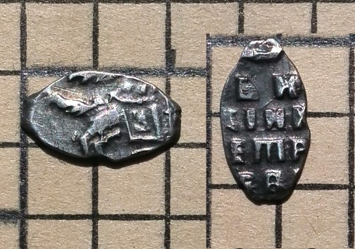 QUOTE(Milta @ Jun 10 2016, 11:48) Скорее современное творчество по ее мотивам. Вы ошибаетесь. Это оригинал. Монету нашел лично. Несколько человек отписались на почту и тоже определили монету, как Полуденга ВКМ времени Василия Тёмного, не опубликованных штемпелей. |