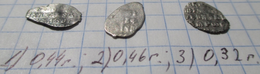QUOTE(аким @ Jun 30 2016, 12:36) копейки Ивана Грозного 1. КГ75, 2. КГ95, 3. то же что-то типа КГ95 , монета с двойным ударом простые Аким большое спасибо! |