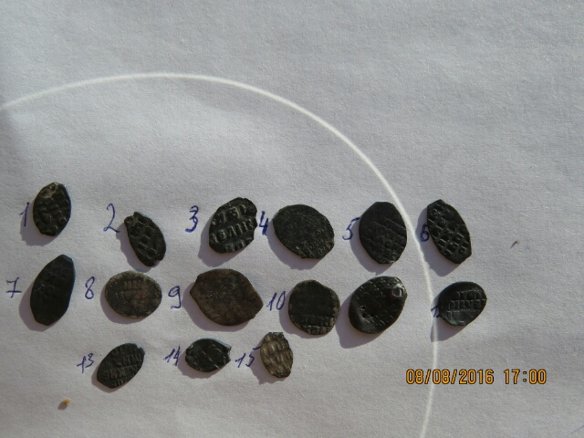 QUOTE(bezoff @ Aug 8 2016, 05:49) Уважаемые!Подскажите,пожалуйста, по этим чешуйкам(атрибуция,цена).Хотя бы те,что читаемы.И по монетам 10,15-не понятны.Это брак?Нижегородская область.Заранее благодарен.С ув. ![]() ![]() ![]() ![]() ![]() Почти все Михаил Федорович, есть копейка Петра, в общей массе состояние не ах, брак это плохо для проволочных монет. Цена будет не велика, те что получше 30-50 р. за шт. -------------------- Человек, который много совершает, и ошибается во многом (Еврипид)