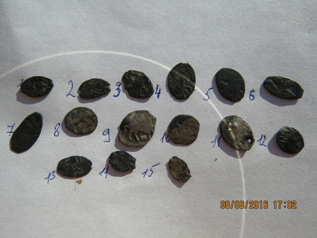Уважаемые!Подскажите,пожалуйста, по этим чешуйкам(атрибуция,цена).Хотя бы те,что читаемы.И по монетам 10,15-не понятны.Это брак?Нижегородская область.Заранее благодарен.С ув.