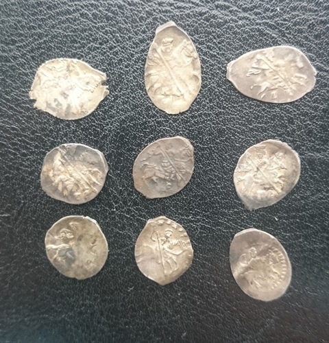 Уважаемые, друзья. Прошу большой помощи в определении данной монетки. Монету нашёл лично, при шурфе. Монета не медная, похожие пула есть в сети, но это другая, сам не пойму что и прошу помощи, найдена в Московской области, вес монетки 1.5г. сопутка чешуйки Василия Темного и Василия Дмитриевича.