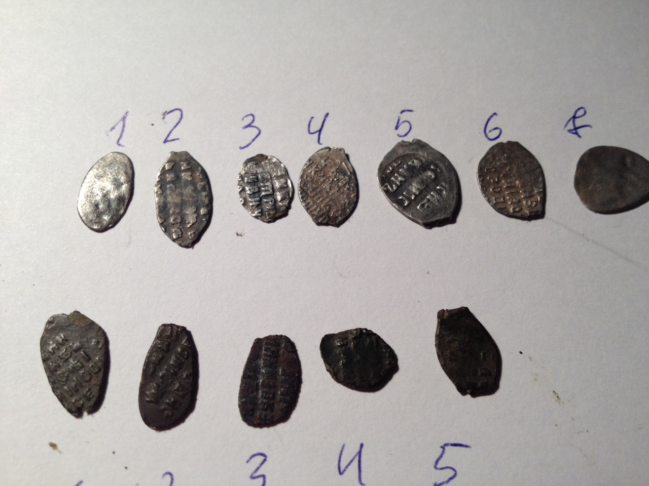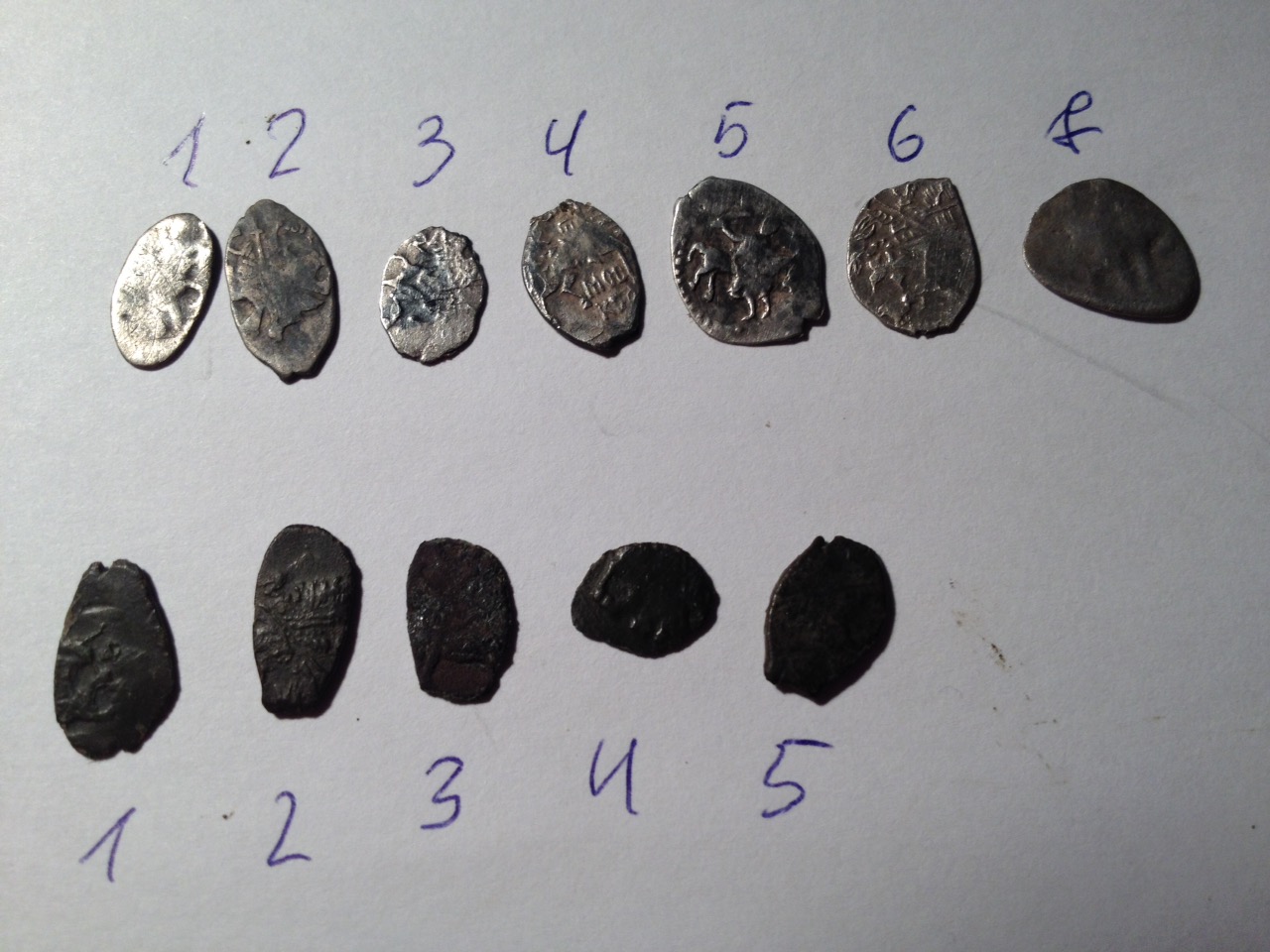 QUOTE(Честь имею @ Nov 4 2016, 19:55) Вечер добрый! Понимаю, что это скорее всего простые копейки Ивана Грозного и Петра 1, но все же, прошу атрибутировать и оценить. Спасибо. Грозный, КГ79, простая, 50р. Пётр Алексеевич, единоличное правление, без определения, 40р -------------------- куплю "чешую" кучками