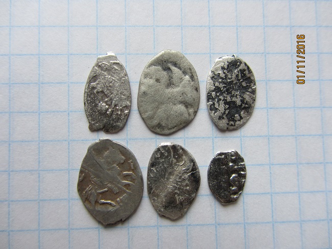 QUOTE(Mitya @ Nov 8 2016, 21:41) ----------------------------------------------------------------------------------- Подскажите мне пожалуйста слева на право. 1.Иван Алексеевич КГ1503 2. Грозный КГ74 3.иван Алексеевич 4. денга Грозного 5. денга Василий III Иванович московская.....была 6. денга Грозного 7. Алексей Михайлович 8. и 9. Петр Алексеевич |