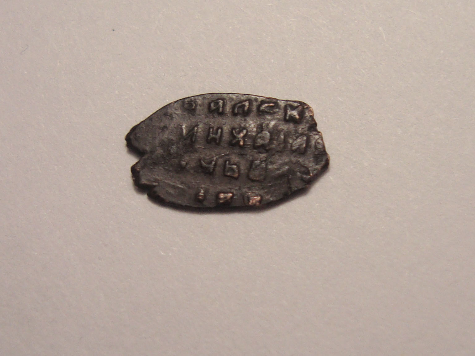 Хотелось бы узнать, сколько может стоить эта чешуйка. dnvn определил ее как очень редкую копейку Иоанна Алексеевича: № 1538 в каталоге Клещинова и Гришина, степень редкости II (чрезвычайно редкая монета). Прорисовка этой копейки в каталоге детализирует нижнюю часть надписи оборотной стороны. В связи с ее редкостью авторы, предположу, не могли составить более полную картину штемпеля (в каталоге эта оборотка под №16). Моя же копейка дает верхнюю часть, пусть и не полностью. К сожалению, лицевик подкачал: чеканен износившимся штемпелем. Стоит ли выкладывать на аукцион, и с какой ценовой планки? Какие будут мнения? С уважением Игорь Вложенные эскизы изображений -------------------- Дышите глубже!