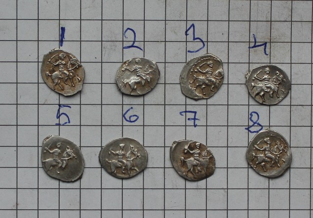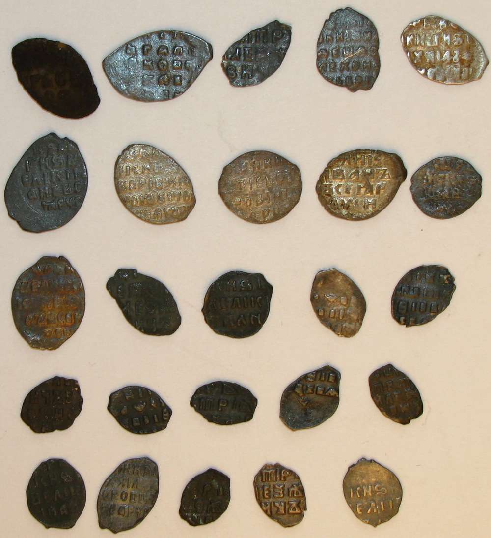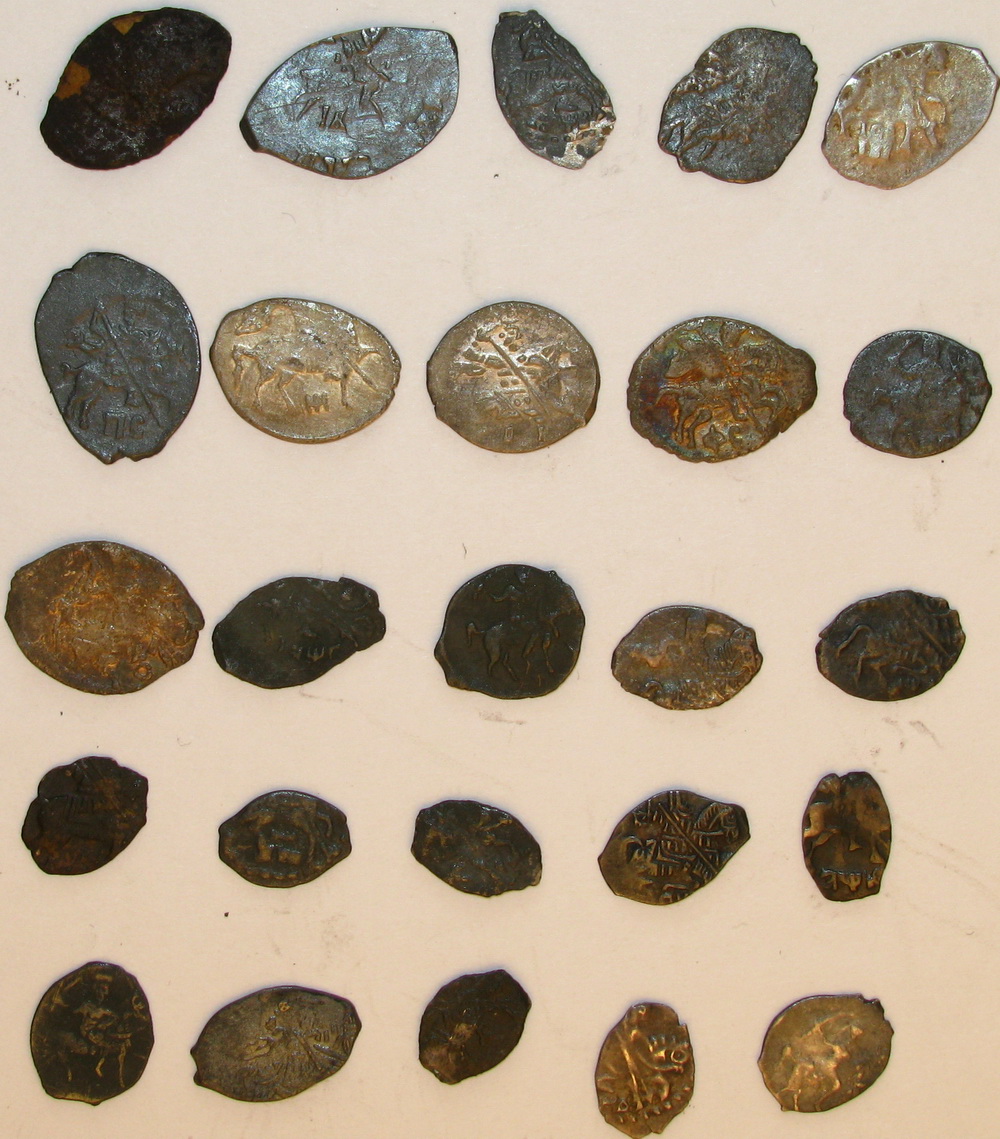 QUOTE(poiskcoins @ Dec 9 2016, 15:56) День добрый определите по кг пожалуйста Первые шесть монет. 1, 4, 6 - Псковские копейки Федора Ивановича, КГ137 2, 3 - Псковские копейки Лжедмитрия 1, КГ245 5 - Псковская копейка Федора Ивановича, КГ138 Все простые. У чешуйки под №1 штемпели, особенно аверс, на стадии сильного разрушения. -------------------- В этом мире нет тайн, есть только скрытая правда - правда, таящаяся в глубине.