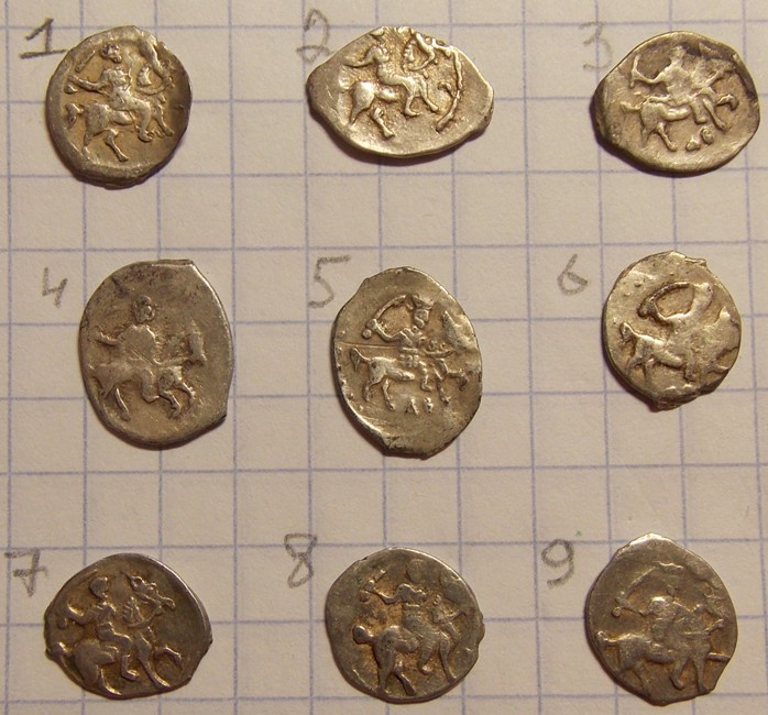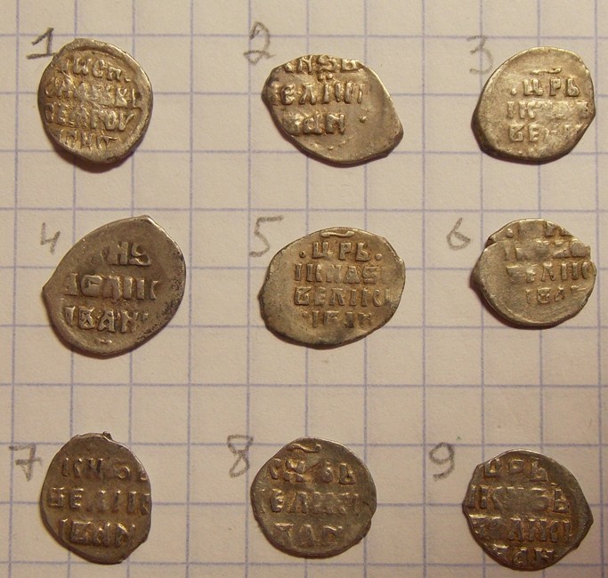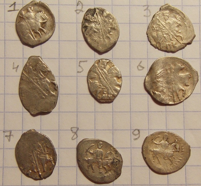 QUOTE(Землеройк @ Dec 12 2016, 21:05) Подскажите, кто знает по данным монеткам. Чей чекан? Первая - анонимная великокняжеская денга конца XIV в. Вторая - Ростов, Андрей Федорович и Константин Владимирович, перечекан. |