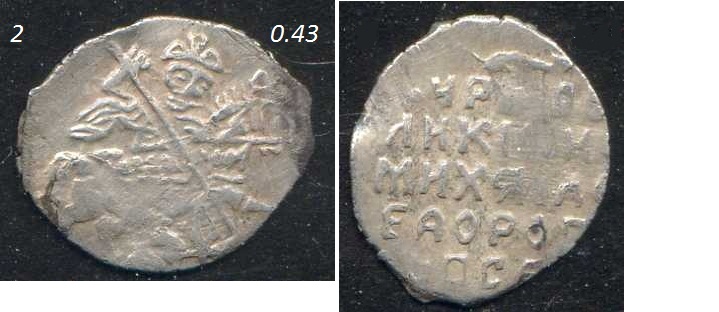 QUOTE(ShtormZ @ Oct 7 2007, 19:37) Михаил Федорович Романов. Мсоква. 1626-1635 годы чеканки. По ГК - 546 Обычная чешуйка, степени редкости не имеет. |