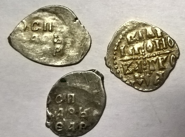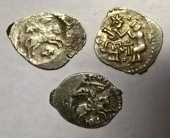 QUOTE(Витабор @ Jan 3 2017, 18:52) по чешуе просвятите и по цене обозначьте.спасибо. Верхняя левая и нижняя... Монеты Василия III Ивановича Новгородский чекан. Правая...Монета независимого Новгорода |