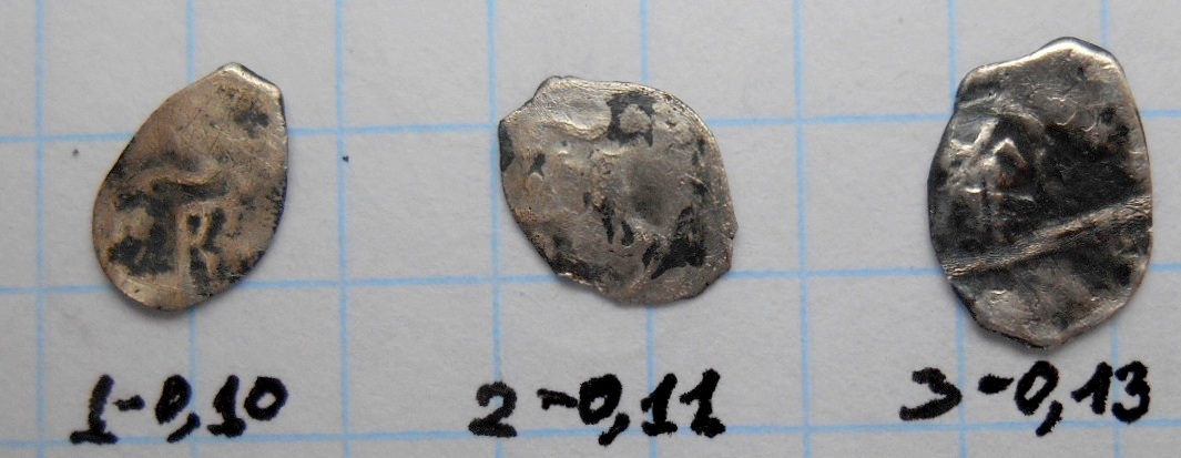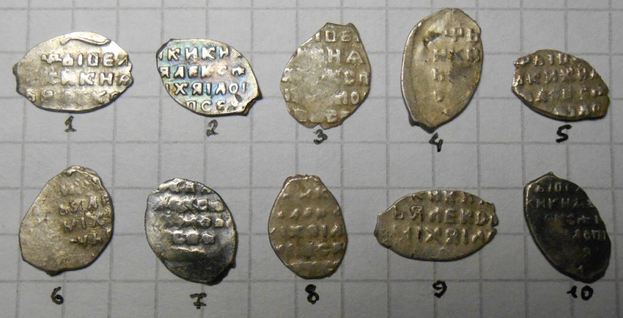 QUOTE(The Black Rider @ Jan 15 2017, 12:23) нет, не все. последняя в верхнем ряду - деньга Ивана Алееевича. (она же самая интересная из этого набора) 1я монета в нижнем ряду - копейка Алексея, скорее всего обрезанная Благодарю. |