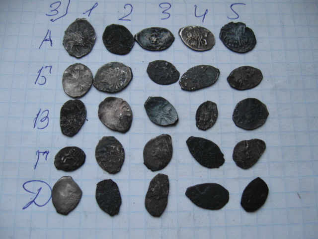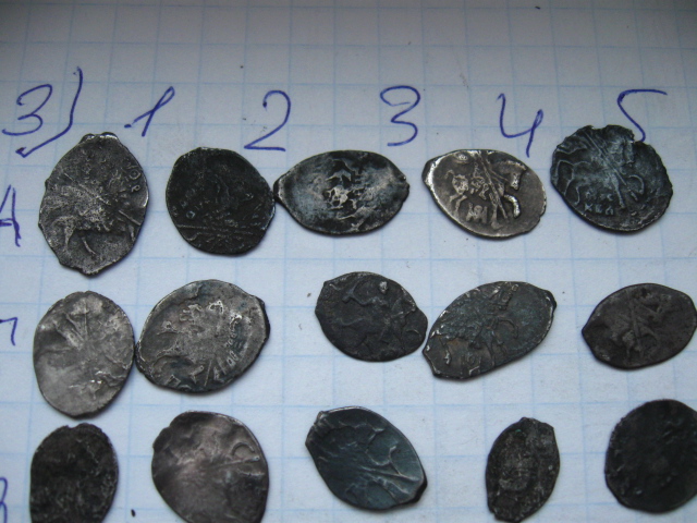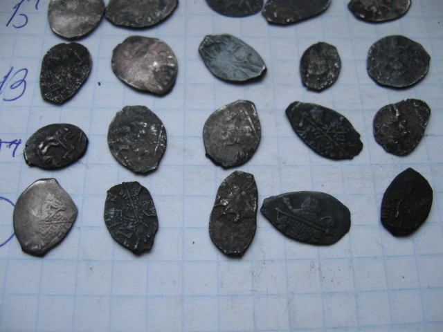 QUOTE(The Black Rider @ Jan 31 2017, 14:32) Михаил Фёдорович: №№ 1,7,9,10,11,13,18,19 (от 30 до 50 р) Грозный: №№ 2,4,12,14 (№2 - 200-300р, прочие - 30-50р) Борис: №№ 3,17 (по 50 +-) Фёдор Алексеевич: №5 (30-40р) Фёдор Иванович: №№ 6,15,16 (50р +-) Василий Шуйский: №8 (100-150р) Владислав: №20 (500р +) Огромное спасибо за столь быструю атрибуцию и примерную оценку монет. А по №2 и по №20 можно поподробнее? С Уважением. Сообщение отредактировано R.A.V.: Jan 31 2017, 17:35 -------------------- Кто ищет, тот всегда найдет!
