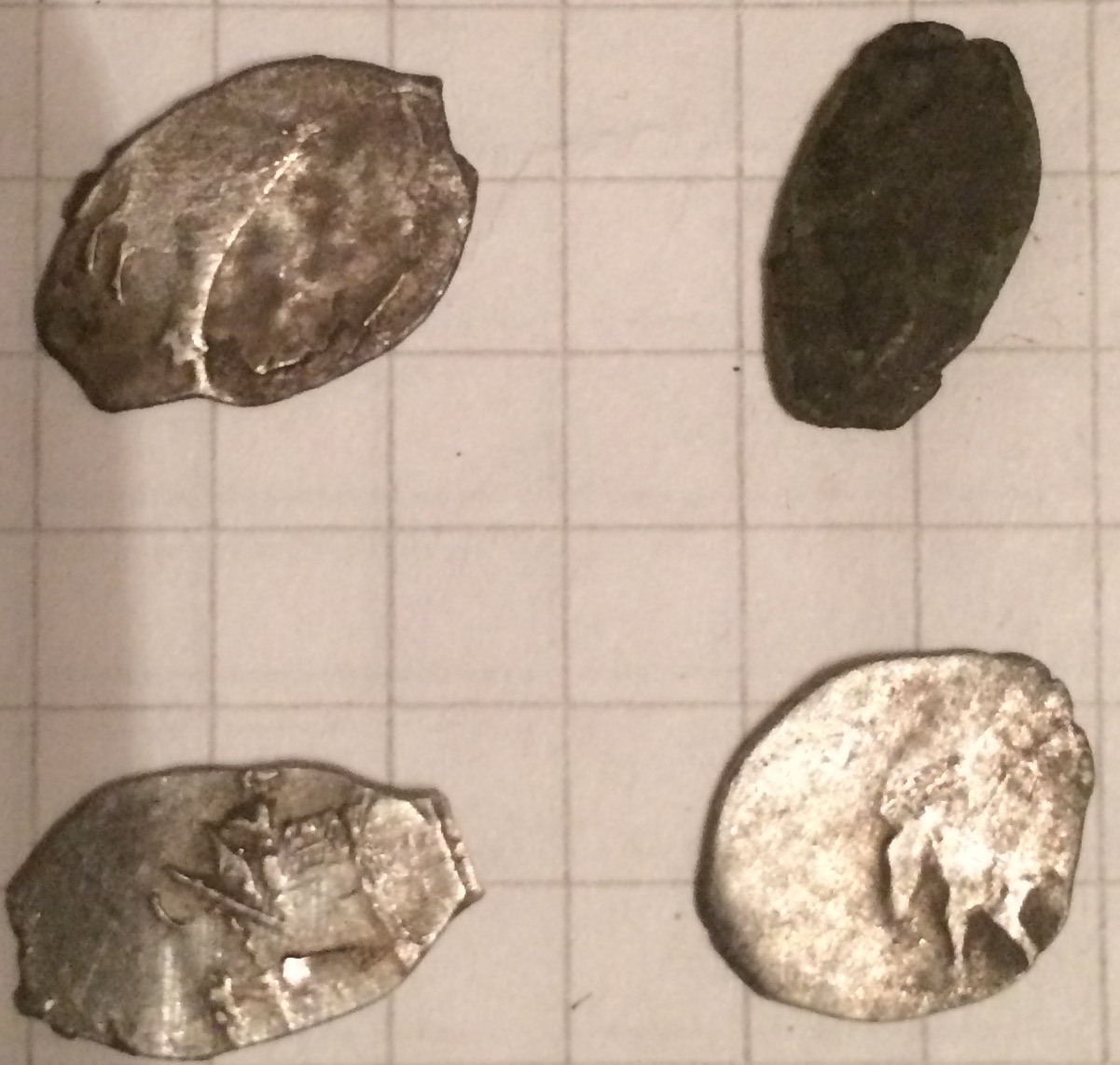 QUOTE(D-kl @ Apr 1 2017, 17:47) Доброго времени уважаемые форумчане помогите пожалуйста если это возможно определить пуло,найдено в НИжегородской области,сопутка удельные монеты,с одной стороны по моему читается "Nло"может быть Даниил Борисович,заранее спасибо мелкоформатное пуло: московское или тверское, не видно |